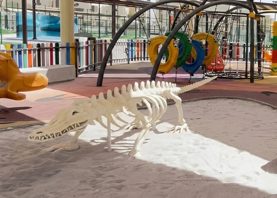 This project involved the production, supply, and installation of themed landscape elements across 21 parks within the Seihan Housing Development in Al Ain. Delivered for Musanada, the scope included Dinosaur Eggs with integrated metal pipe structures, Skeletal Bones, and Crocodile Skeletons. Designed for durability and safety, these installations create engaging outdoor environments that encourage exploration, learning, and imaginative play within the community parks.
